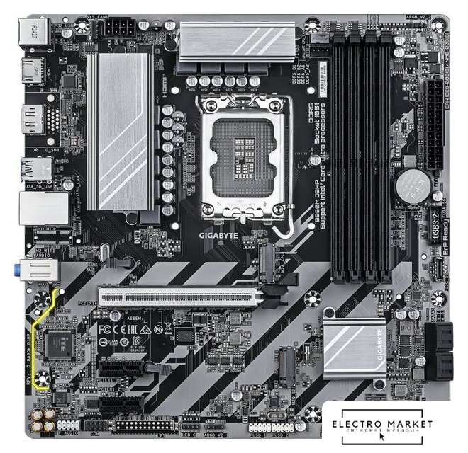 mATX, сокет Intel LGA1851, чипсет Intel B860, память 2xDDR5 до 9066 МГц, слоты: 2xPCIe x16 5.0, 2xM.2, 6+1+2 фаз питания