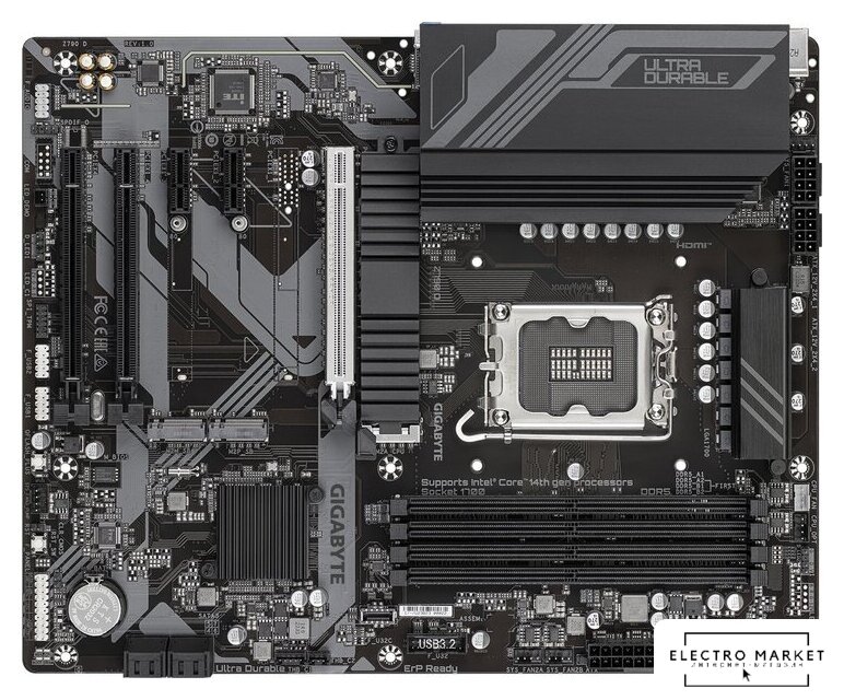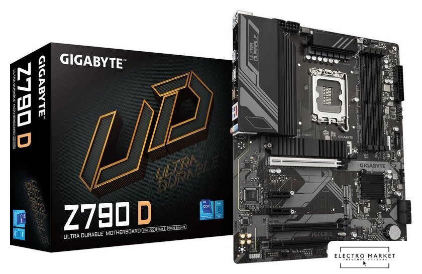 ATX, сокет Intel LGA1700, чипсет Intel Z790, память 4xDDR5 до 7600 МГц, слоты: 3xPCIe x16 5.0, 2xPCIe x1, 3xM.2, 802.11ax (Wi-Fi 6E)+Bluetooth 5.3, 12+1+1 фаз питания