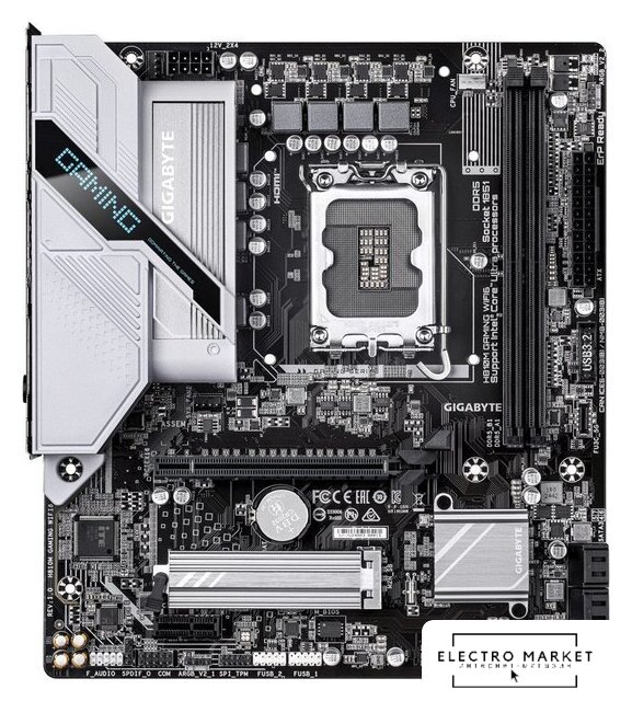 mATX, чипсет Intel B860, память 2xDDR5 до 8400 МГц, слоты: 1xPCIe x16 5.0, 1xPCIe x4, 1xPCIe x1, 2xM.2, 802.11ax (Wi-Fi 6)+Bluetooth 5.2, 10+1+1 фаз питания