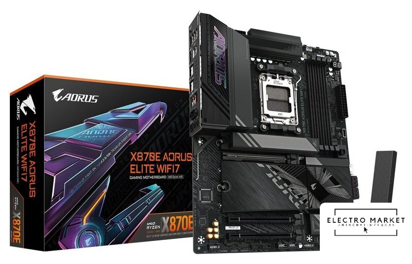 ATX, чипсет AMD X870E, память 4xDDR5/DDR5 CUDIMM до 8400 МГц, слоты: 3xPCIe x16 5.0, 4xM.2, 802.11be (Wi-Fi 7)+Bluetooth 5.4, 14+2+1 фаз питания