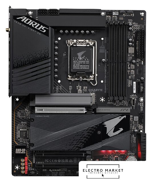 ATX, сокет Intel LGA1700, чипсет Intel Z790, память 4xDDR5 до 7200 МГц, слоты: 3xPCIe x16 5.0, 1xPCIe x1, 4xM.2, 802.11ax (Wi-Fi 6E)+Bluetooth 5.3, 16+1+1 фаз питания