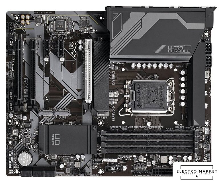ATX, сокет Intel LGA1700, чипсет Intel Z790, память 4xDDR5, слоты: 3xPCIe x16, 2xPCIe x1, 3xM.2