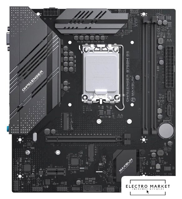 mATX, сокет Intel LGA1700, чипсет Intel B760, память 4xDDR5 до 7600 МГц, слоты: 1xPCIe x16 5.0, 1xPCIe x4, 3xM.2, 802.11ax (Wi-Fi 6)+Bluetooth 5.3, 8+1+1 фаз питания