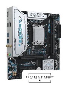 mATX, чипсет Intel H810, память 2xDDR5 до 6400 МГц, слоты: 1xPCIe x16 4.0, 1xPCIe x1, 1xM.2, 802.11ax (Wi-Fi 6)+Bluetooth 5.3, 4+1+2 фаз питания