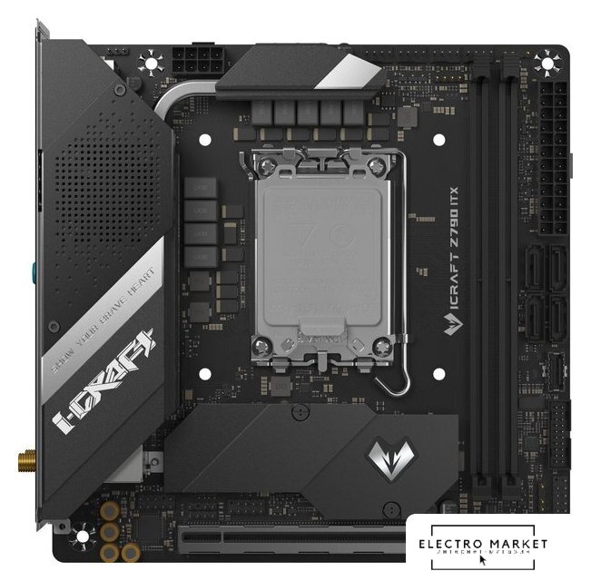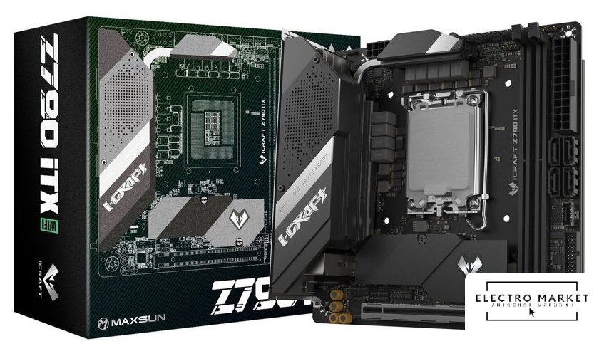 Mini-ITX, сокет Intel LGA1700, чипсет Intel B760, память 2xDDR5 до 7200 МГц, слоты: 1xPCIe x16 5.0, 2xM.2, 802.11ax (Wi-Fi 6E)+Bluetooth 5.3, 8+1+1 фаз питания