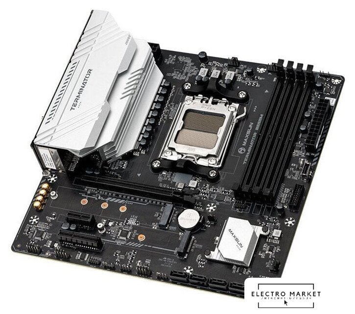 mATX, сокет AMD AM5, чипсет AMD B650, память 4xDDR5 до 7600 МГц, слоты: 1xPCIe x16 4.0, 1xPCIe x1, 2xM.2, 802.11ax (Wi-Fi 6)+Bluetooth 5.3, 5+2+2 фаз питания