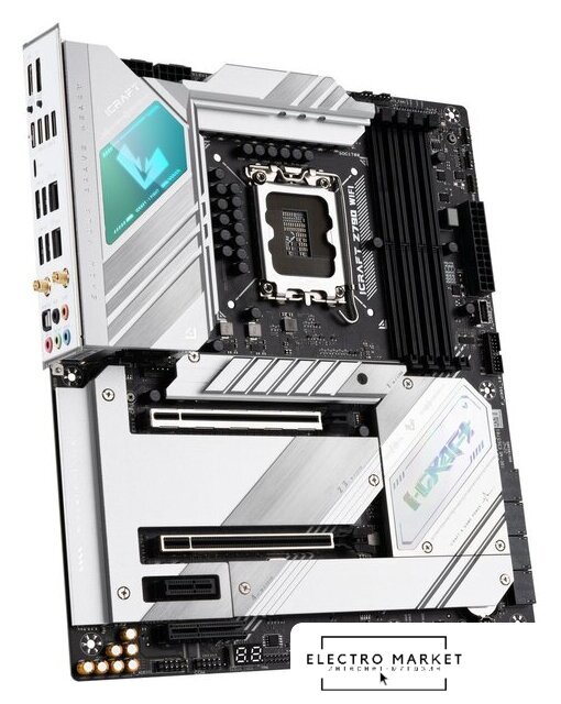 ATX, сокет Intel LGA1700, чипсет Intel Z790, память 4xDDR5 до 7200 МГц, слоты: 3xPCIe x16 5.0, 1xPCIe x1, 4xM.2, 802.11ax (Wi-Fi 6E)+Bluetooth 5.3, 14+1+1 фаз питания