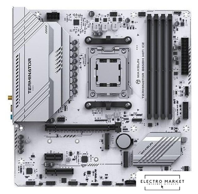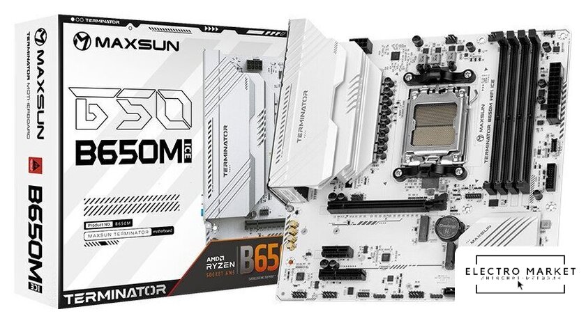 mATX, сокет AMD AM5, чипсет AMD B650, память 4xDDR5 до 7200 МГц, слоты: 2xPCIe x16 4.0, 3xM.2, 8+2+1 фаз питания