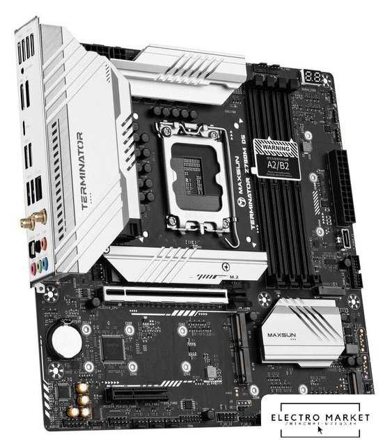 mATX, сокет Intel LGA1700, чипсет Intel B760, память 4xDDR4 до 5333 МГц, слоты: 2xPCIe x16 5.0, 1xPCIe x1, 3xM.2, 802.11ax (Wi-Fi 6)+Bluetooth 5.2, 12+1 фаз питания