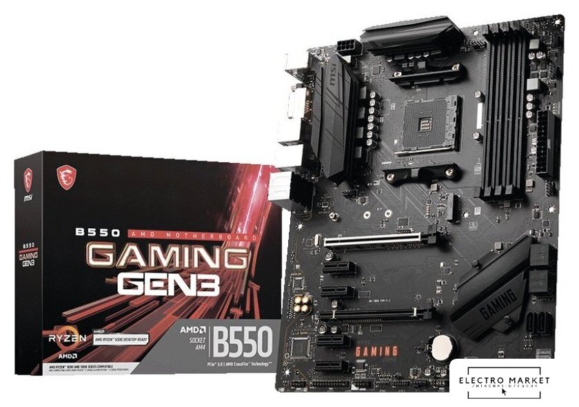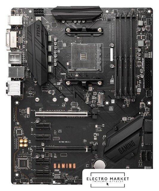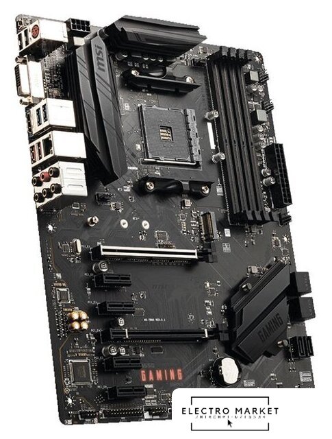 ATX, сокет AMD AM4, чипсет AMD B450, память 4xDDR4 до 4400 МГц, слоты: 2xPCIe x16 3.0, 3xPCIe x1, 1xM.2