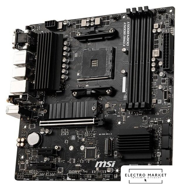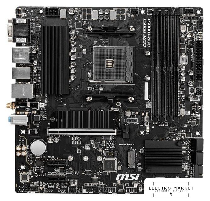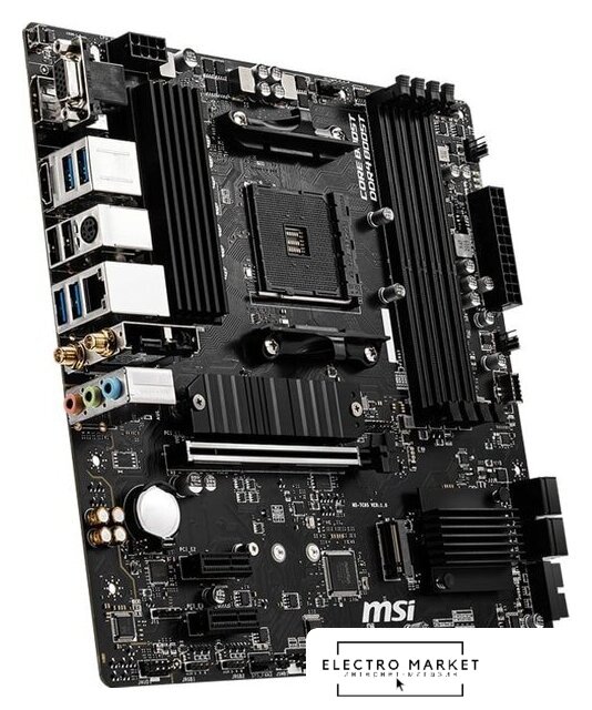 mATX, сокет AMD AM4, чипсет AMD A520, память 4xDDR4 до 4866 МГц, слоты: 1xPCIe x16 3.0, 2xPCIe x1, 1xM.2, 802.11ac (Wi-Fi 5)+Bluetooth 5.0
