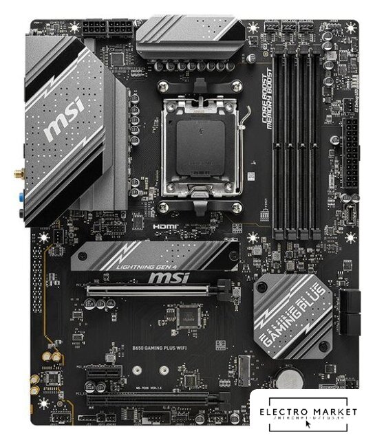 ATX, сокет AMD AM5, чипсет AMD B650, память 4xDDR5 до 8000 МГц, слоты: 3xPCIe x16 4.0, 3xM.2, 802.11ax (Wi-Fi 6E)+Bluetooth 5.3, 12+2+2 фаз питания