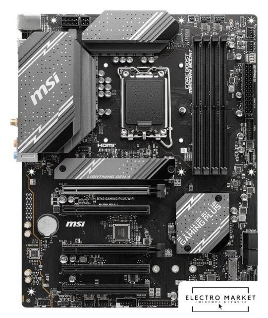 ATX, сокет Intel LGA1700, чипсет Intel B760, память 4xDDR4, слоты: 1xPCIe x16, 2xPCIe x1, 3xM.2
