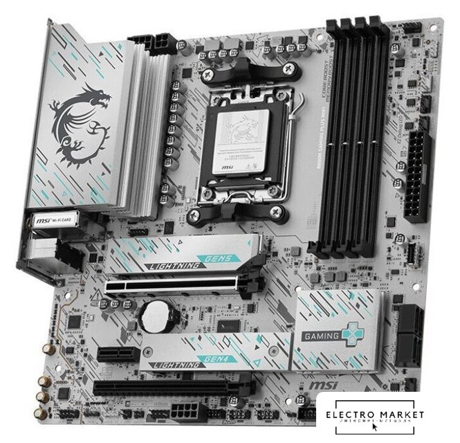 ATX, чипсет AMD B650, память 4xDDR5 до 8000 МГц, слоты: 2xPCIe x16 5.0, 1xPCIe x1, 3xM.2, 802.11ax (Wi-Fi 6E)+Bluetooth 5.3, 8+2+1 фаз питания