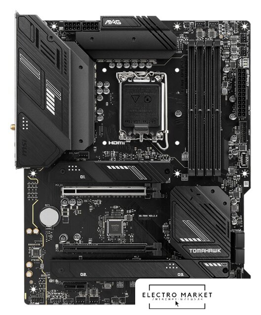 mATX, сокет Intel LGA1700, чипсет Intel B660, память 4xDDR4 до 5333 МГц, слоты: 2xPCIe x16 5.0, 1xPCIe x1, 2xM.2, 802.11ax (Wi-Fi 6)+Bluetooth 5.2