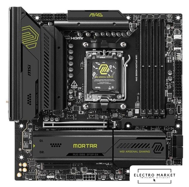 mATX, чипсет AMD B850, память 4xDDR5 до 8000 МГц, слоты: 1xPCIe x16 5.0, 1xPCIe x1, 3xM.2, 802.11ax (Wi-Fi 6E)+Bluetooth 5.3, 14+2+1 фаз питания
