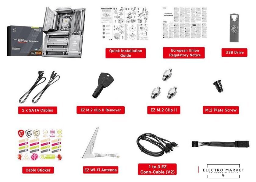 | Комплектация | - кабель SATA 2 шт, - EZ Wi-Fi антенна, - EZ кабель передней панели, - 1-3 EZ кабель, - 3 винта EZ M.2 Clip II, - EZ M.2 Clip II экстрактор, - набор стикеров, - USB-флеш-накопитель, - документация |