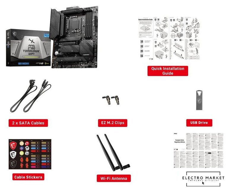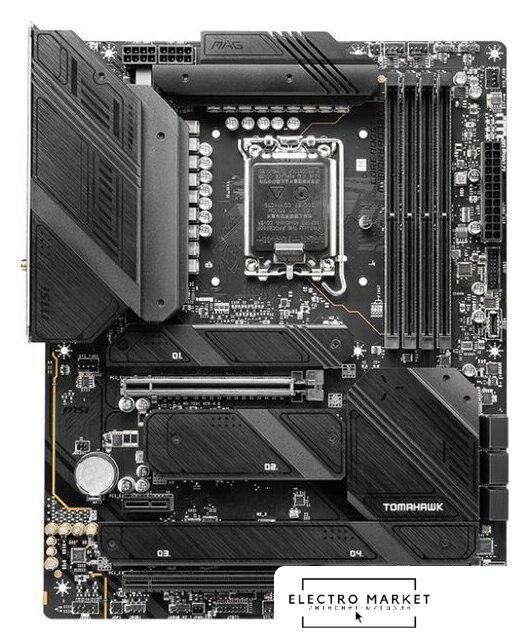 ATX, сокет Intel LGA1700, чипсет Intel B760, память 4xDDR4 до 5333 МГц, слоты: 3xPCIe x16 4.0, 3xM.2, 802.11ax (Wi-Fi 6E)+Bluetooth 5.3