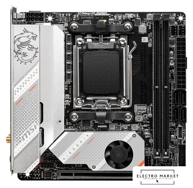mATX, сокет AMD AM5, чипсет AMD B650, память 4xDDR5 до 7600 МГц, слоты: 3xPCIe x16 4.0, 2xM.2