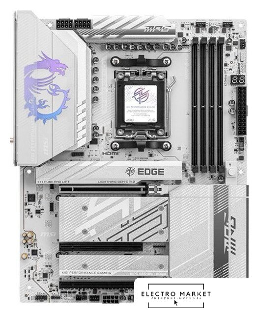 ATX, сокет AMD AM5, чипсет AMD X870, память 4xDDR5 до 8000 МГц, слоты: 3xPCIe x16 5.0, 4xM.2, 802.11be (Wi-Fi 7)+Bluetooth 5.4, 16+2+2 фаз питания