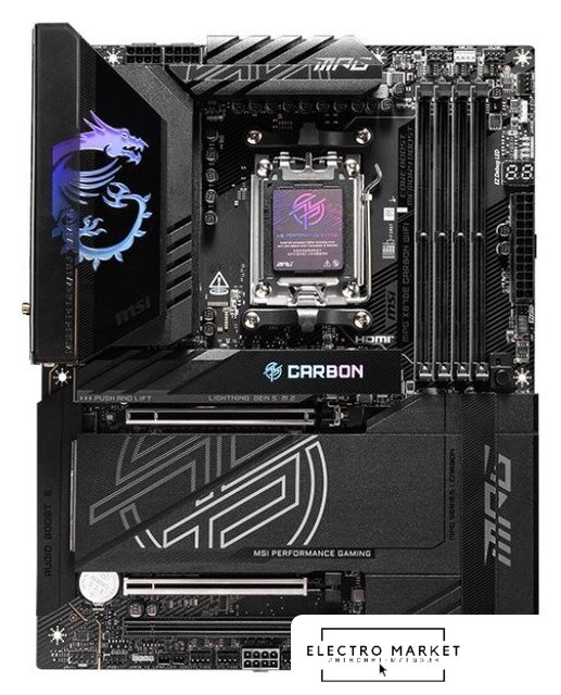 ATX, сокет AMD AM5, чипсет AMD X870, память 4xDDR5 до 8000 МГц, слоты: 2xPCIe x16 5.0, 4xM.2, 802.11be (Wi-Fi 7)+Bluetooth 5.4, 16+2+2 фаз питания