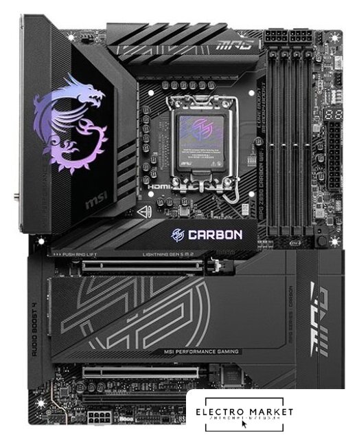 ATX, сокет Intel LGA1851, чипсет Intel Z890, память 4xDDR5/DDR5 CUDIMM до 8800 МГц, слоты: 2xPCIe x16 5.0, 7xM.2, 802.11be (Wi-Fi 7)+Bluetooth 5.4, 18+1+2 фаз питания