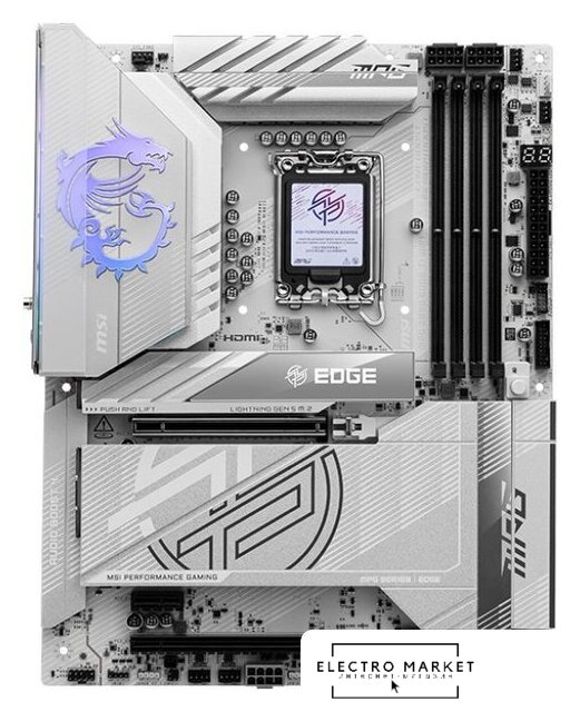 ATX, сокет Intel LGA1851, чипсет Intel Z890, память 4xDDR5 до 9066 МГц, слоты: 1xPCIe x16 5.0, 2xPCIe x4, 1xPCIe x1, 4xM.2, 802.11ax (Wi-Fi 6E)+Bluetooth 5.3, 16+1+1+1+1 фаз питания