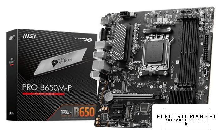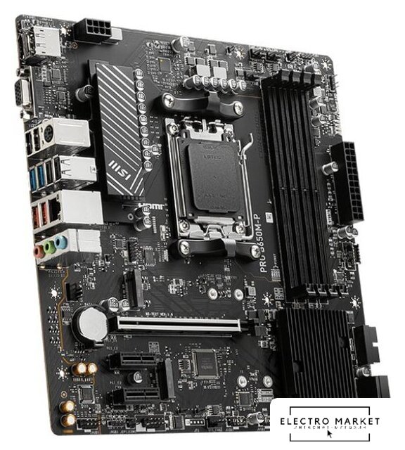 mATX, чипсет AMD B650, память 4xDDR5 до 5200 МГц, слоты: 1xPCIe x16 5.0, 1xPCIe x4, 1xPCIe x1, 2xM.2, 8+2+1 фаз питания