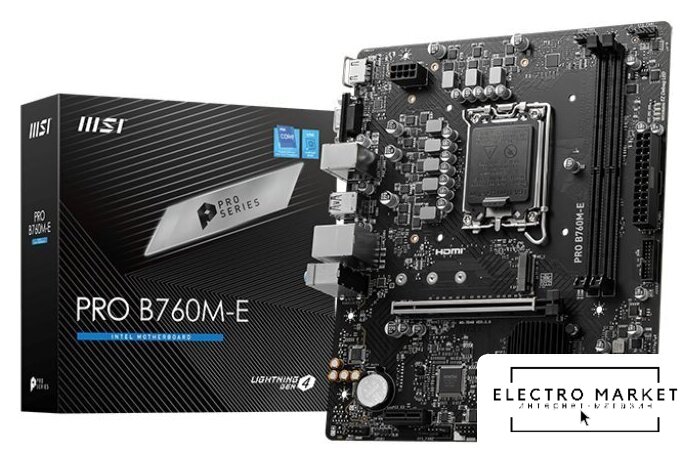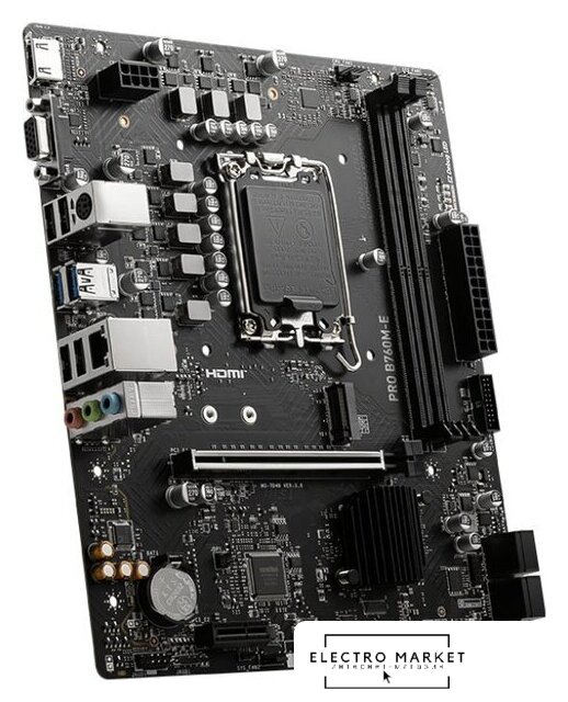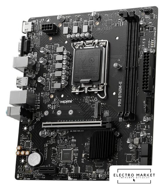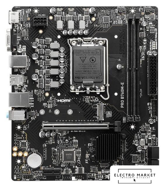 mATX, сокет Intel LGA1700, чипсет Intel B760, память 2xDDR4 до 5333 МГц, слоты: 1xPCIe x16 4.0, 2xPCIe x1, 2xM.2