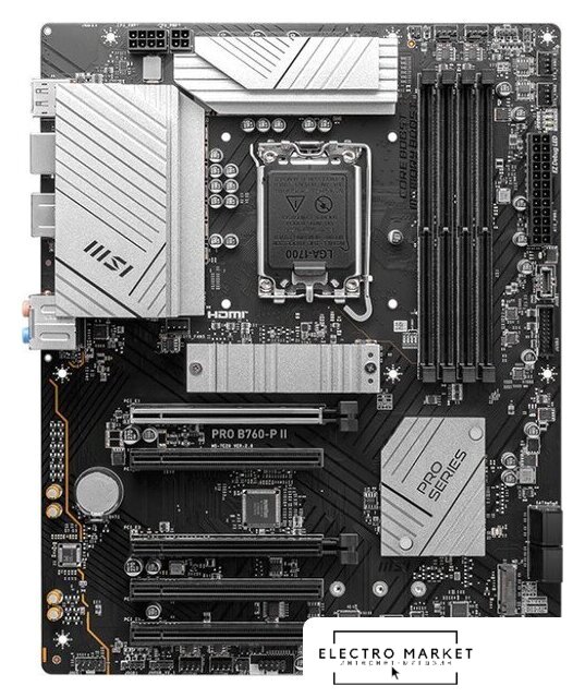 ATX, сокет Intel LGA1700, чипсет Intel B760, память 4xDDR4, слоты: 1xPCIe x16, 2xPCIe x1, 3xM.2