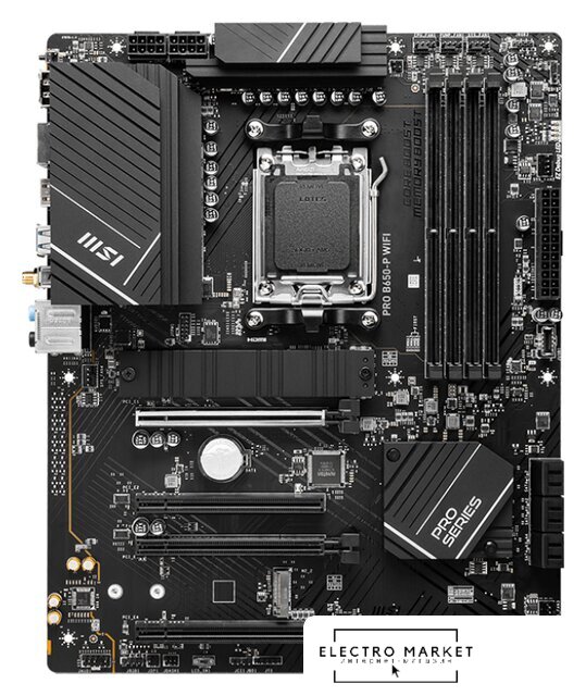 mATX, сокет AMD AM5, чипсет AMD B650, память 4xDDR5 до 5600 МГц, слоты: 3xPCIe x16 4.0, 2xM.2, 802.11ax (Wi-Fi 6)+Bluetooth 5.2