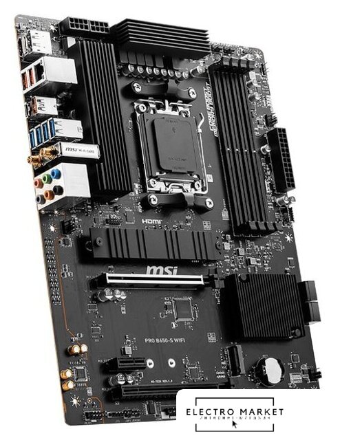 mATX, сокет AMD AM5, чипсет AMD B850, память 4xDDR5 до 8200 МГц, слоты: 2xPCIe x16 5.0, 2xM.2, 5+2+2 фаз питания