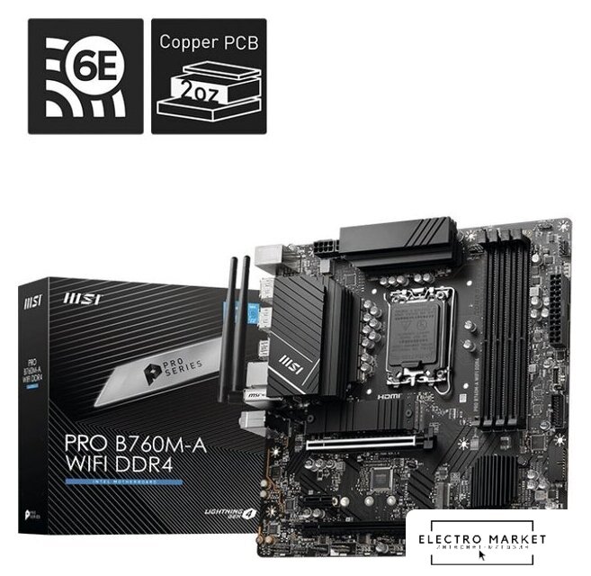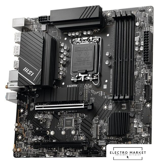 mATX, сокет Intel LGA1700, чипсет Intel B760, память 4xDDR5 до 6800 МГц, слоты: 1xPCIe x16 4.0, 2xPCIe x1, 2xM.2