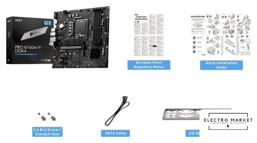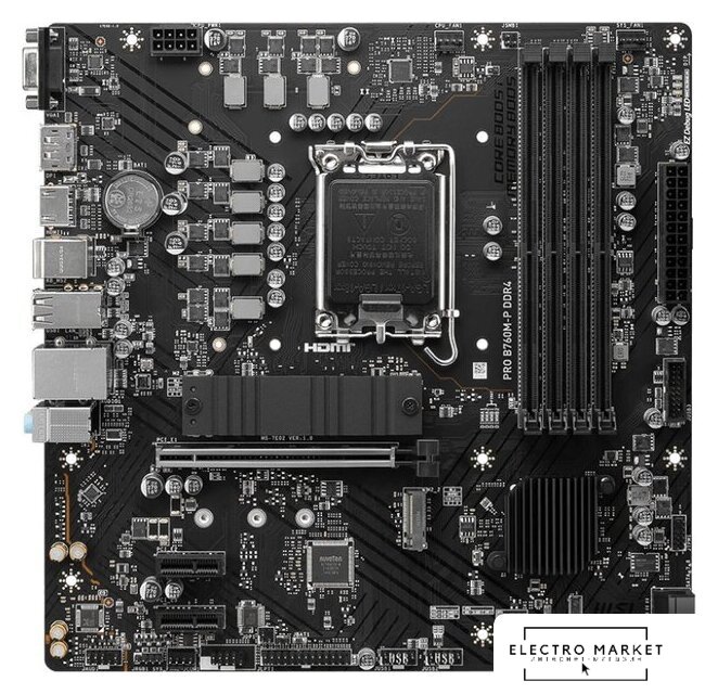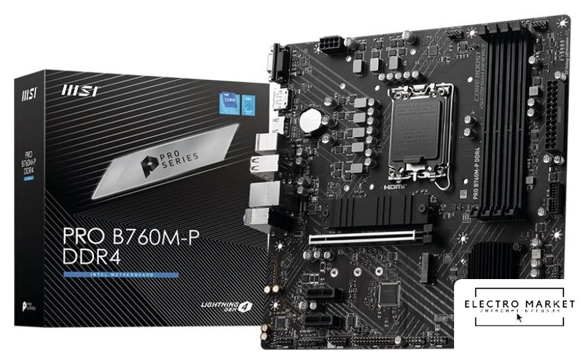 mATX, сокет Intel LGA1700, чипсет Intel B760, память 2xDDR4 до 4266 МГц, слоты: 1xPCIe x16, 1xPCIe x1, 2xM.2
