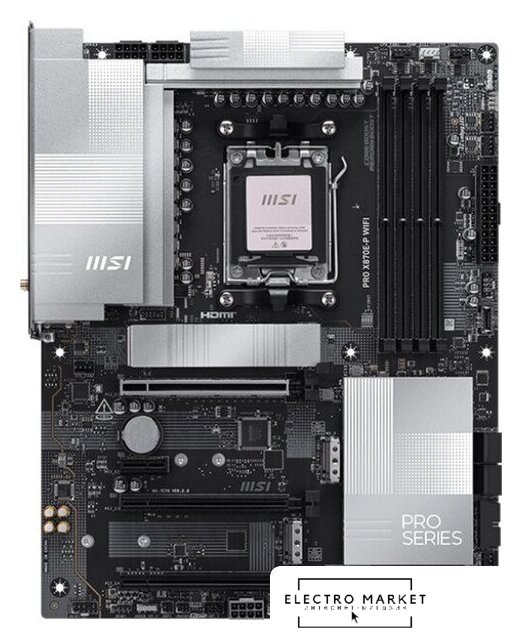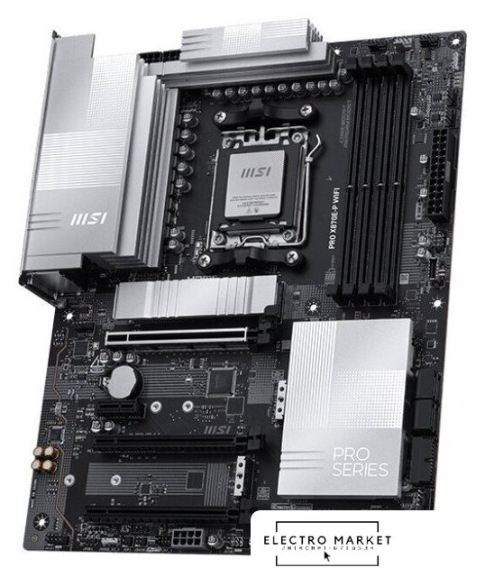 ATX, сокет AMD AM5, чипсет AMD X870, память 4xDDR5 до 8000 МГц, слоты: 3xPCIe x16 5.0, 4xM.2, 802.11be (Wi-Fi 7)+Bluetooth 5.4, 16+2+2 фаз питания