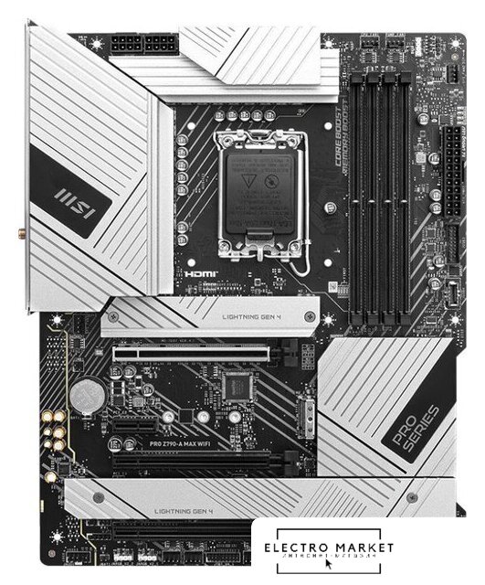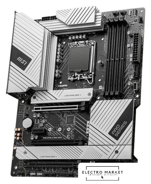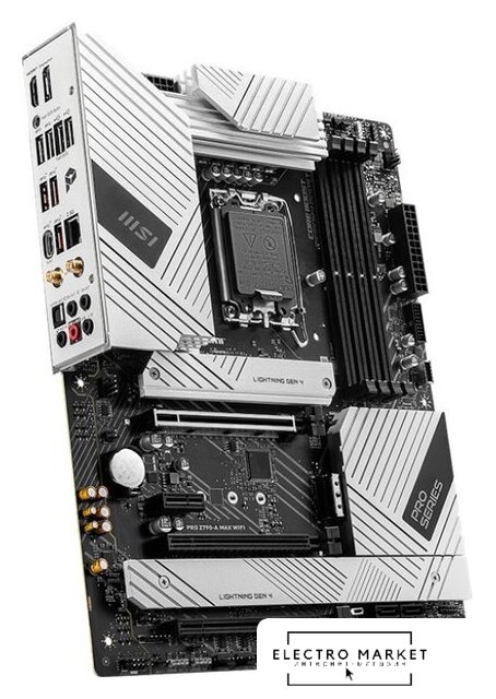 ATX, сокет Intel LGA1700, чипсет Intel B760, память 4xDDR4 до 5333 МГц, слоты: 3xPCIe x16 4.0, 3xM.2, 802.11ax (Wi-Fi 6E)+Bluetooth 5.3