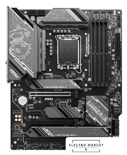 ATX, сокет Intel LGA1700, чипсет Intel H770, память 4xDDR5 до 7200 МГц, слоты: 2xPCIe x16 5.0, 2xPCIe x1, 4xM.2, 802.11ax (Wi-Fi 6)+Bluetooth 5.2, 14+1+1 фаз питания