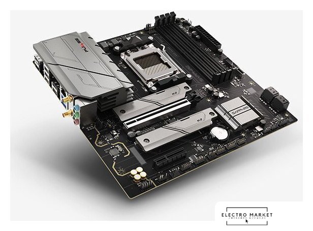 mATX, сокет AMD AM5, чипсет AMD B650, память 4xDDR5 до 7600 МГц, слоты: 3xPCIe x16 4.0, 2xM.2