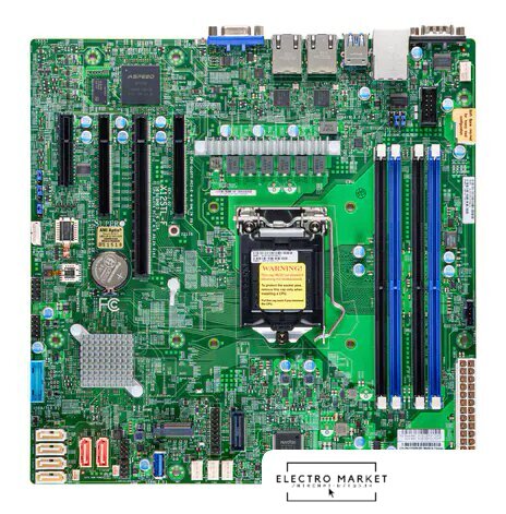 mATX, сокет Intel LGA1200, чипсет Intel W480, память 4xDDR4 до 2933 МГц, слоты: 1xPCIe x16 3.0, 1xPCIe x8, 1xPCIe x4, 2xM.2
