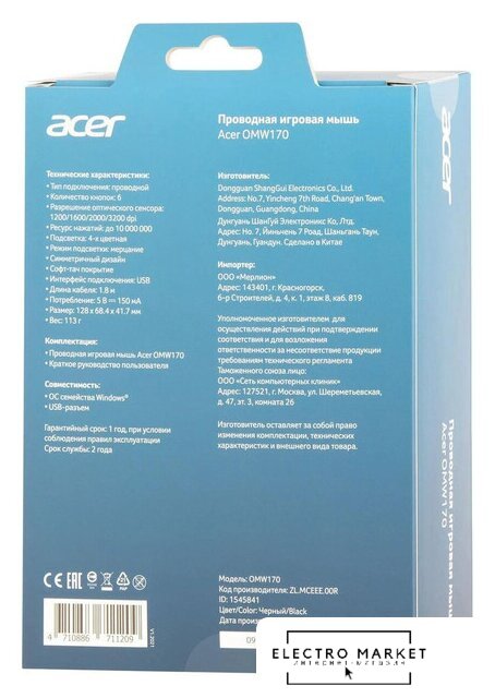 Изготовитель: Эйсер ИНК. 8Ф г. № 88, Секция 1, Синь Тай-Ву-Роуд., Хсичих 221, Таипеи В Сянь, Тайвань
