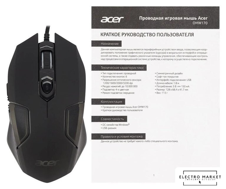 Размеры и вес мыши |