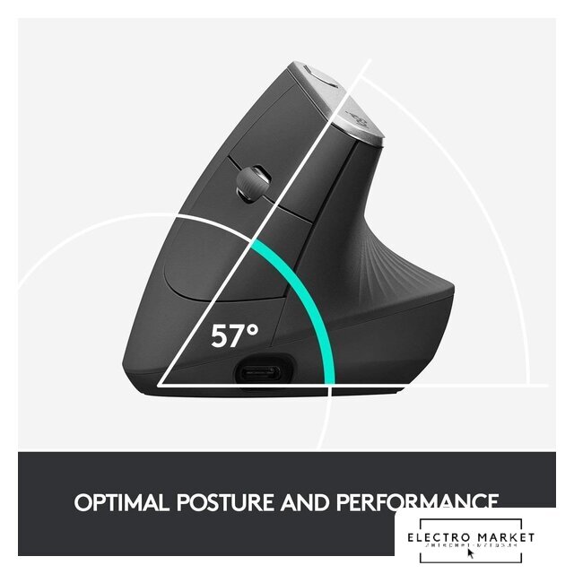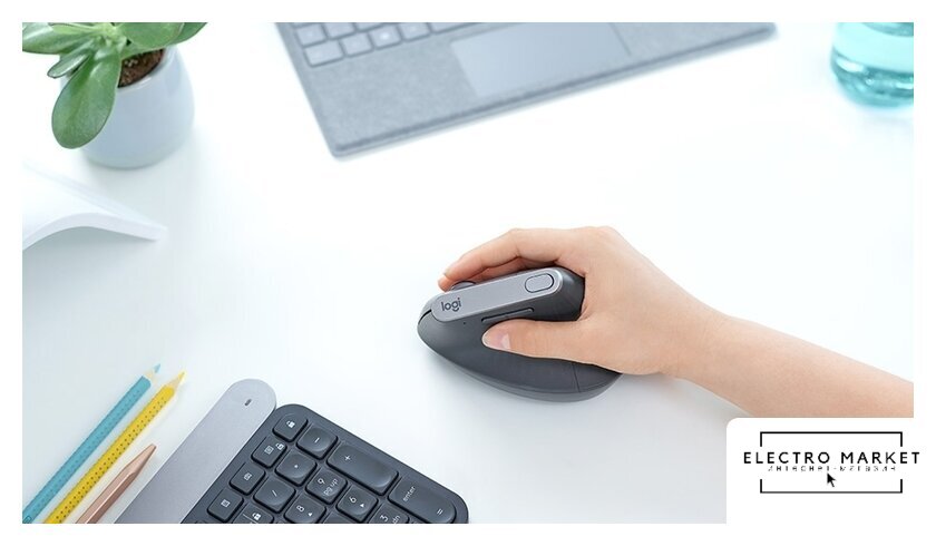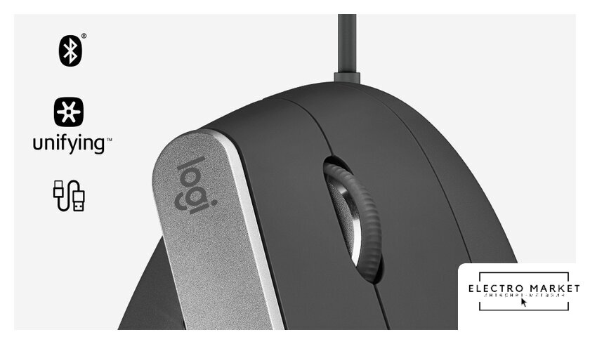 ноутбучная вертикальная мышь, беспроводная Bluetooth/беспроводная радио, сенсор оптический 2400 dpi, 7 кнопок, колесо с нажатием, цвет черный/темно-серый