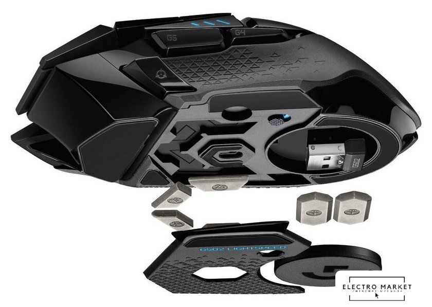 | Комплектация | - Беспроводная мышь Logitech G502 Lightspeed.- Беспроводной передатчик Lightspeed.- Адаптер-удлинитель для беспроводного передатчика.- Кабель для зарядки и передачи данных.- Небольшая коробка для различных аксессуаров и дополнений.- Четыре грузика по 2 г.- Два грузика по 4 г.- Инструкция. |