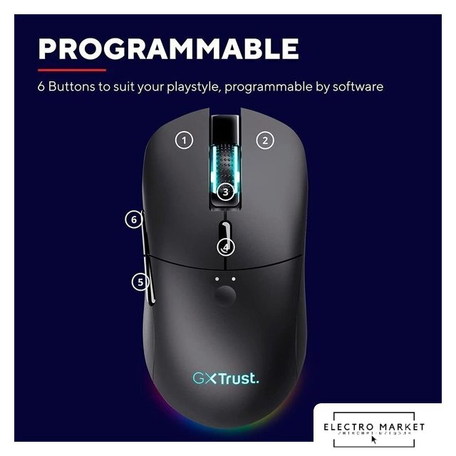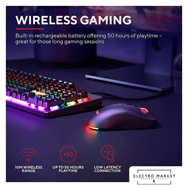 полноразмерная игровая мышь для ПК, проводная USB/беспроводная радио, сенсор оптический 26000 dpi, 6 кнопок, колесо с нажатием, цвет черный
