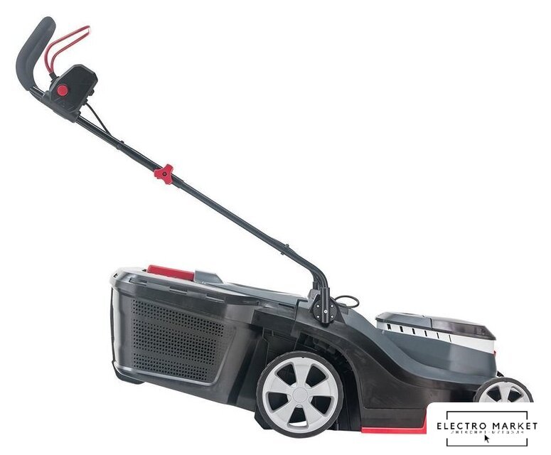 роторная газонокосилка, аккумуляторный двигатель, работа от аккумулятора, ширина скашивания: 43 см, жесткий травосборник 63 л
