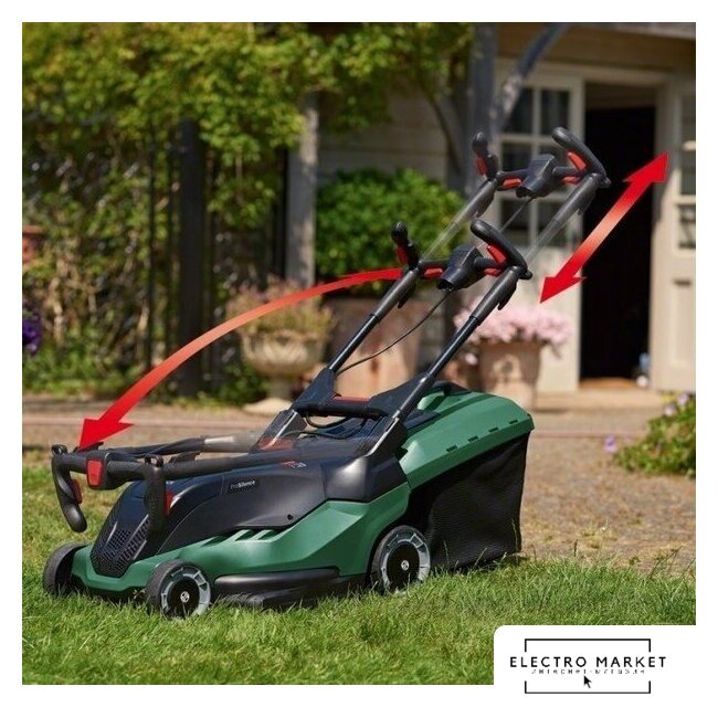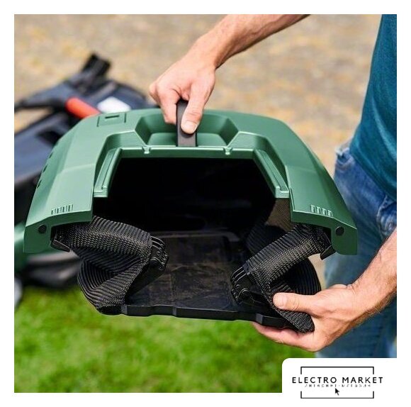 роторная газонокосилка, аккумуляторный двигатель, 20 В, аккумулятор в комплекте, ширина скашивания: 34 см, мягкий травосборник 30 л