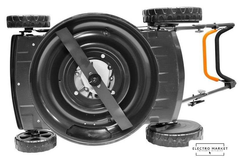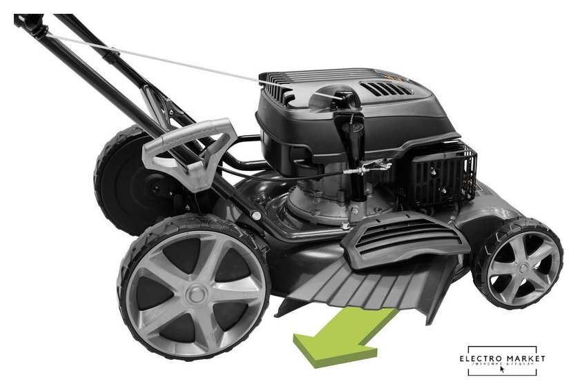 роторная газонокосилка, бензиновый двигатель, четырехтактный, без аккумулятора в комплекте, ширина скашивания: 41 см, жесткий травосборник 60 л