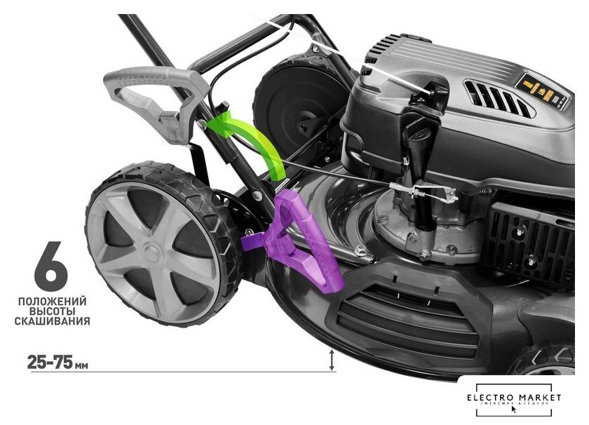 роторная газонокосилка, самоходная, бензиновый двигатель, 2600 Вт, четырехтактный, ширина скашивания: 48 см, мягкий травосборник 65 л