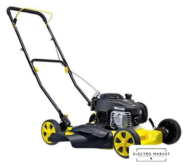 Комплектация | Газонокосилка 1 шт.Колесо с втулкой в сборе 4 шт.Колпак колеса 4 шт.Направляющая бокового выброса травы 1 шт.Шайба пружинная 4 шт.Шайба плоская 4 шт.Шплинт 4 шт.Крепёж нижней части рабочих рукояток 1 к-тРуководство по эксплуатации 1 шт |