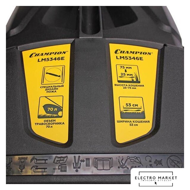 | Комплектация | - Газонокосилка;- Руководство по эксплуатации;- Травосборник;- Заглушка;- Желоб бокового выброса;- Зарядное устройство;- Аккумулятор. |